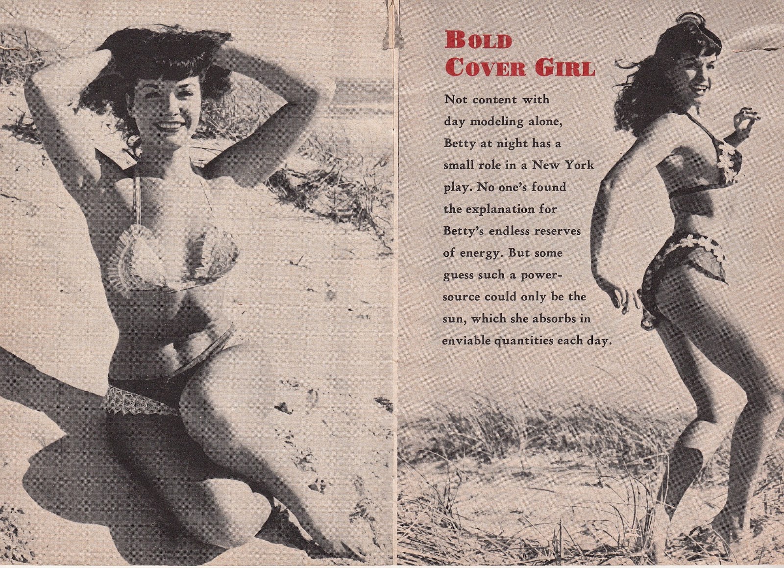 Aunque hay que aclararlo desde ya, a Bettie nunca le molestó posar desnuda. “La primera vez que posé desnuda no me sentí avergonzada, fué para un club de fotógrafos aficionados y recuerdo que me sentí como si estuviera trabajando con ropa, nunca lo vi mal; Después de todo, cuando Dios creó a Adán y Eva, los puso desnudos en el paraíso. Si Eva no hubiera probado la manzana prohibida, seguramente habrían pasado el resto de sus vidas desnudos”.
